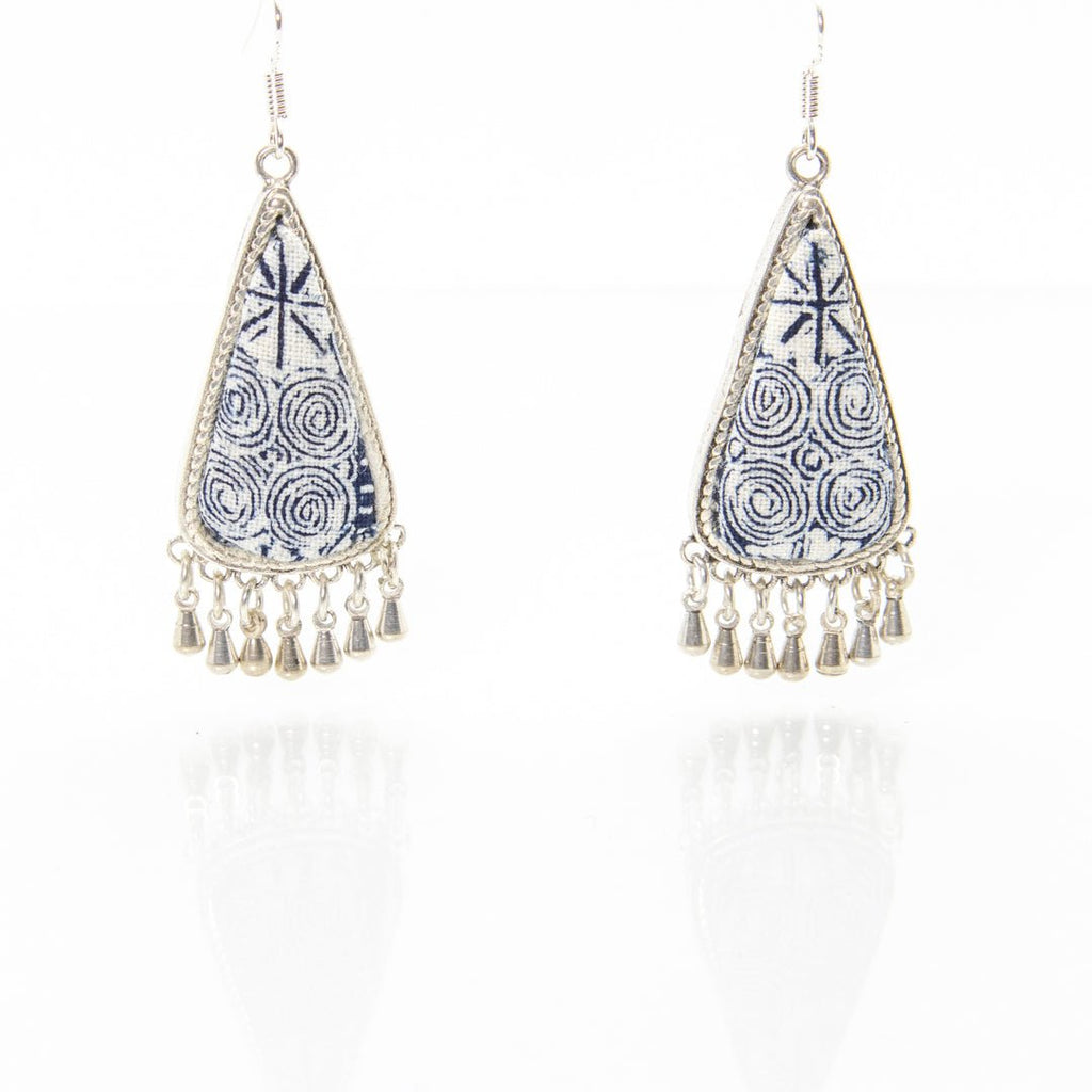 Classic Hand Dyed Batik Handmade Miao Silver Earrings (Narrow Triangle)