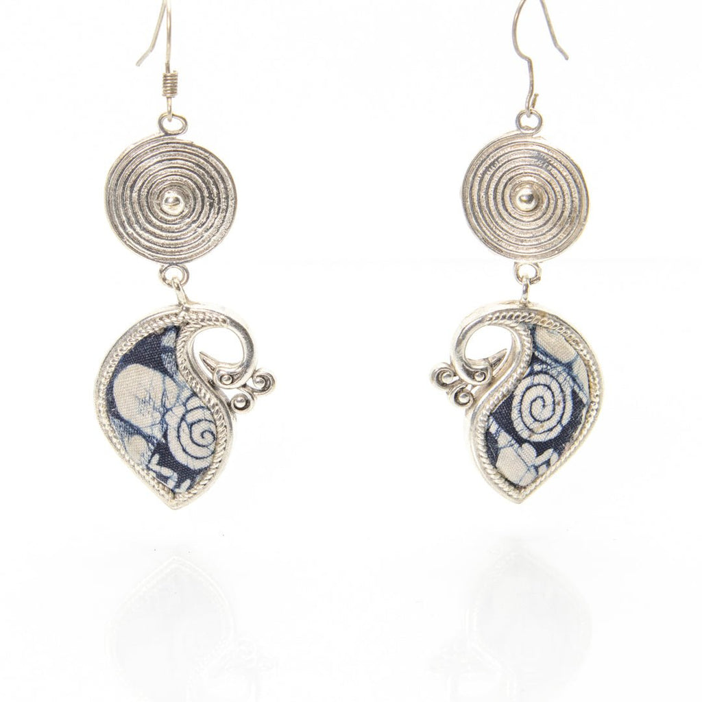 Classic Hand Dyed Batik Handmade Miao Silver Earrings (Peacock)
